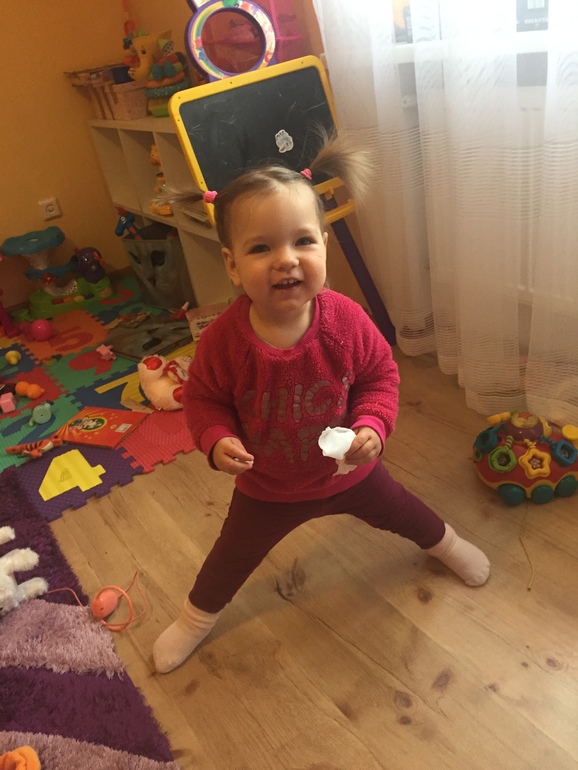 Растем и развиваемсяЗавтра у нас минидата, решила в честь этого написать немного о Карише на память) Итак: рост/вес не знаю,давно не были у педиатра) зубов 12) и лезут ещё,в связи с чем Кариша периодически устраивает мне веселую жизнь))Но в целом она спокойная и нежная девочка) Полюбила обнимашки! Подходит и обнимает за ногу,когда например посуду мою,так мило) А один раз она упала,я говорю:"Иди пожалею", и раскрыла руки для обьятий,она подбежала притулилась,и так ей понравилось что теперь падает нарочно по 20 раз на дню и бежит чтобы ее жалели))хохочет при этом) Еще у Каринки появилось свое чувство юмора) Подшучивает надо мной, например говорит "на" и протягивает мне яблоко, я только хочу взять,она убегает и прячется,типа дразнится))) Полюбила кукол, кормит их, садит на горшок,моет,сама же на горшок не ходит)) Вообще конечно намного интереснее с ней стало проводить время,есть диалог уже есть отдача) Итак чем мы занимаемся целыми днями?