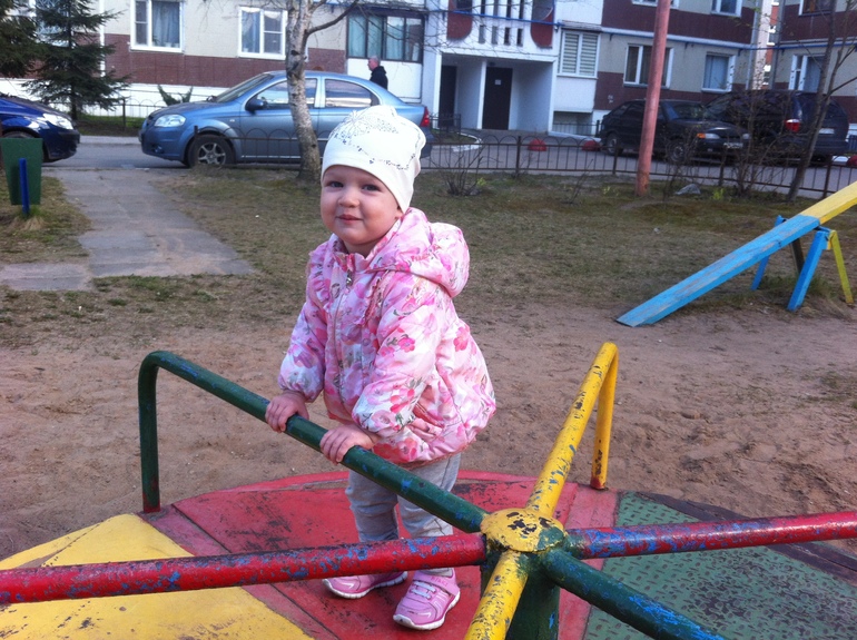Осмелев Арина командовала мне или бабушке сидеть на скамейке, а сама бежала на площадку и только посмей подойти!!! Ладно бы если просто побежала в песке ковыряться, а она лезет на горку, причём не на малышовую, а для деток постарше, на высокую,без ограничений. Конечно немного на этой почве мы конфликтовали.