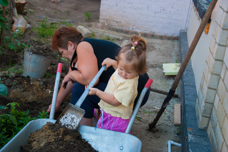 Помогает нам по дому))) Особенно траву в огороде дергать)))
