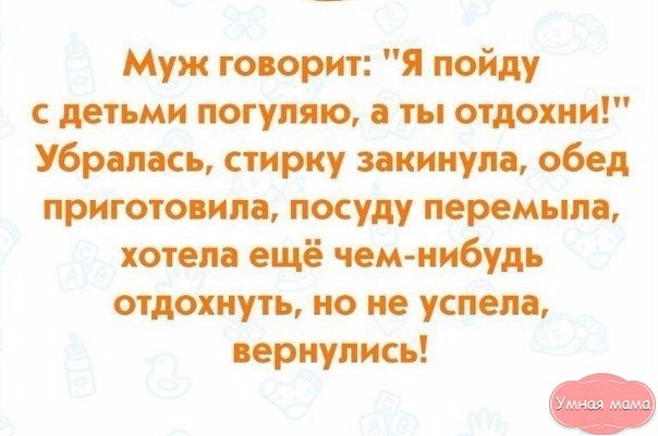 Если муж говорит отдохни,он идет гулять с ребенком на 2-3 часа, а я спать