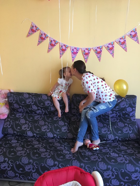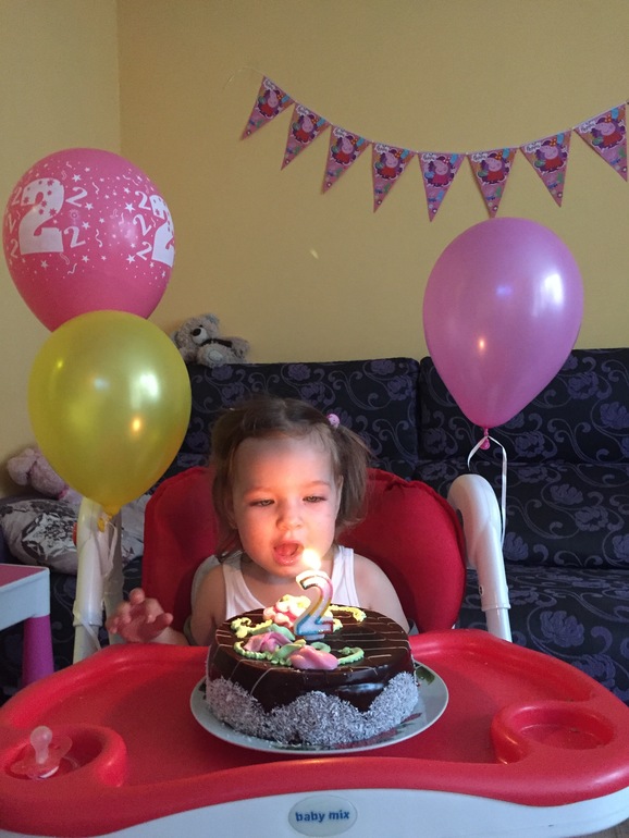 как видите мама там тоже вполне счастлива))))и поехали домой распаковывать железную дорогу со свинкой пеппой,о которой дочка мечтала и задувать свечи))