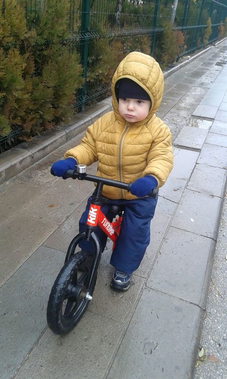 Из спорта у нас ещё любимчик беговел, мы с ним и в стужу, и в зной