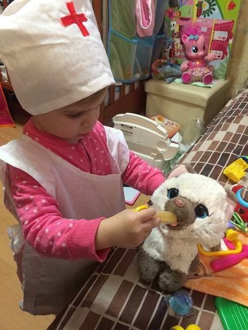 1) Играем с лего дупло. Первый набор "Зоопарк" купили на день рождения на 1 год и он не зашел. В 2 года Алиса проявила к нему интерес и нам подарили еще дом со всем инвентарем. Сейчас мы объединили эти наборы и играем в 2 сразу. У нас куклы спят, обязательно чистят зубы после сна, едят, ездят на машине к бабушкеи дедушке, ухаживают за животными и катаются с горок. На новый год решили подарить ей большой набор "Парк аттракционов".