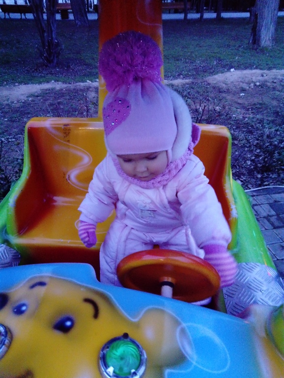 С недавни х пор стали брать на улицу мелки. Рисовать ими ей нравится, на мой взгляд, больше, чем дома карандашами. Вообще ей нравится все новое, она любознательна, легко вливается в новую игру. Любит наклейки клеить, книжки любит очень, особенно если там животные. Как и многие дети ее возраста, книгу слушать не будет, сразу переворачивает страницу.Выход: читать все равно, пока ребенок играет во что-то. Все это откладывается у малышей.Так, к примеру, Викуся знает, что дед посадил репку и выросла она большая-пребольшая (показывает сразу ,какая большая, когда слышит начало этой сказки). Знает, что в итоге мышка (пи-пи-пи) помогла вытянуть репку, и т.д. Любит очень животных, на улице не пройдет мимо ни одной кошки, собаки, птички.. Ко всем бежит со своими приветствиями (маууу-мааау, ва-ва), всех хочет трогать и "общаться". Все чаще выходим без коляски, за ручку гулять ни в какую не хочет. Но зато стала более-менее рядом идти. Ножками топать любит, стараюсь без надобности на руках не носить. Если идем без коляски, то далеко, разумеется не уходим. Рядом с домом пляж, парк, детская площадка.Все в пешей доступности. Придумываем разные маршруты , чтоб интересно было Викусе гулять и познавать мир.
