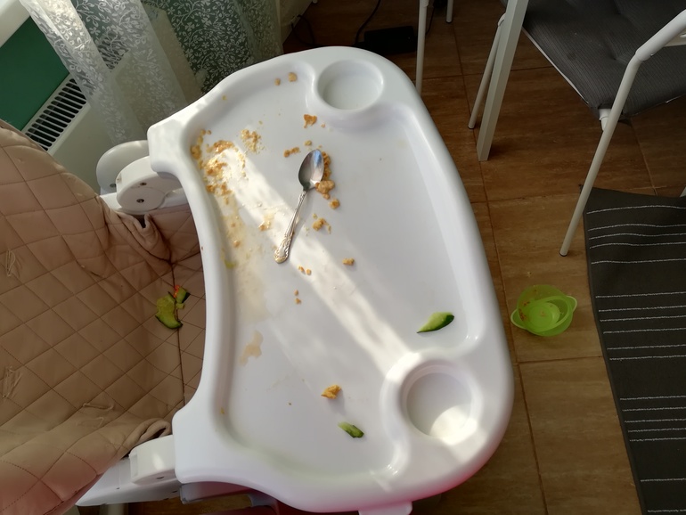 Старшая ела из моих рук долго, лет до 3. Зато чисто) с младшей так не выходит, отбирает ложку, и все вот так колбасит. Еду выливается из тарелки. Кстати тарелка типа на присоске, но она не успокоится пока не оторвет её от стола) как вмонтировать тарелку прямо в стол???))) 🙈🙈🙈 тарелка вечно на полу в итоге...