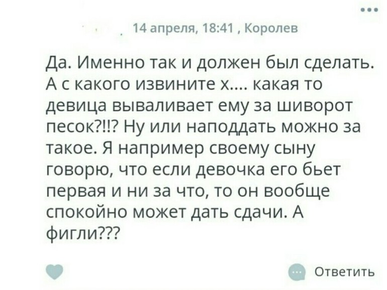 И ладно бы этот ребёнок сам себя бы обсыпал песком - всем пофиг, почему от него другие должны страдать?...
