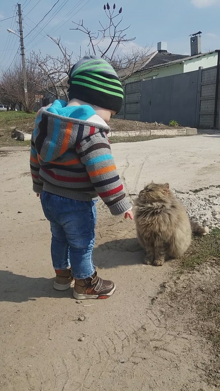 Да, котов и собак очень любит, этого уже и за ухо успел подергать))