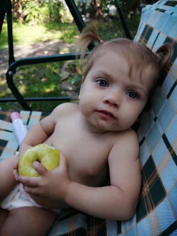 Смотрю фотки, кажется, что совсем недавно было лето, недавно на дачу ездили... Хотя урожай доедаем до сих пор. С питанием у Вали, вроде бы, всё хорошо. Приучаю её к самостоятельности, стараюсь не кормить (хотя иногда всё-таки докармливаю ложкой). Обычно даю тарелку с едой и что-нибудь попить. Мой юный экспериментатор не только ест, но и смешивает, переваливает из одной емкости в другую. Поэтому на днях она ела суп с молоком, котлетки с компотом... Главное, не жалуется) Ну а если совсем не хочет есть, насильно не впихиваю. Тем более доесть она может и из моей тарелки...
