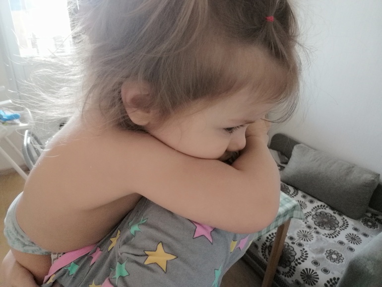 Очень много на своём говорит, выглядит, будто она говорит предложениями, но на китайском (эрлыбырлы папа бырлымырлы мама). Понимает многое, больше, чем показывает. Хитрая, не будет делать что-то, если не хочет. Но с другой стороны помогает хорошо, почти всегда горшок выносит, тряпкой любит помахать, маме на огороде помогала. Вчера мясо делали, я её рукой нарезала мясо, картошку, лук. Стиральную машинку вместе загружаем, посуду стала со мной мыть (до истерик, блин, если я мою и не беру её). Обнимает часто, целует (но папе реже достаётся, с ним больше диких игр).