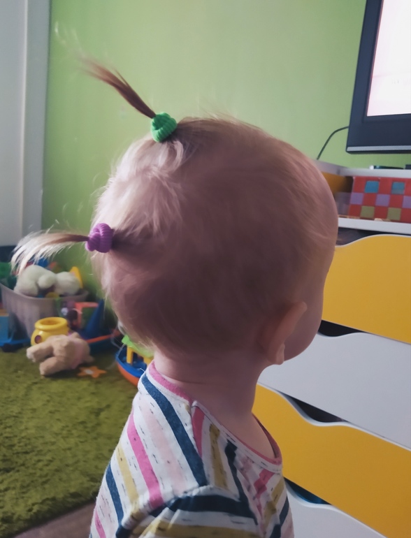 Я сегодня тоже сделала впервые хвостики на макушке 😄 через неделю уже будет 2.1