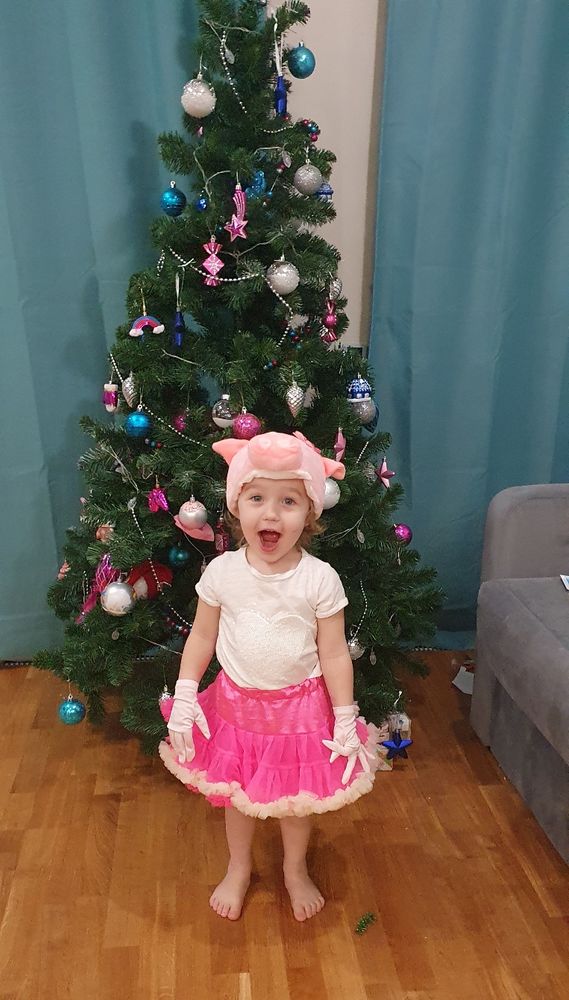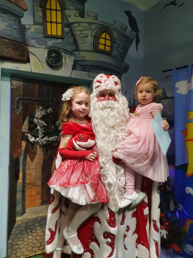 Старшая в этом возрасте не подходила и близко к Деду Морозу и аниматорам в костюмах, зато Софи не испугалась)))
