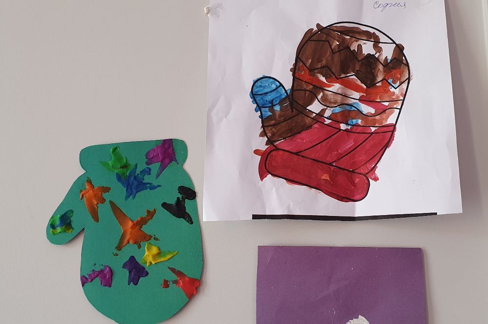 Рисовать особо не получается, вот только-только научилась рисовать человечков. А так все были каляки-маляки.