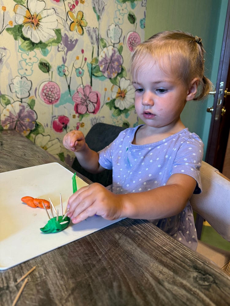 Цвета формы все знает, пазлы из 5-6 частей сама собирает. Из 10-11 с моей помощью. Всякие развивашки обожает. Лепить и рисовать очень любит: красками, фломастерами, восковыми карандашами. На стене тоже😆