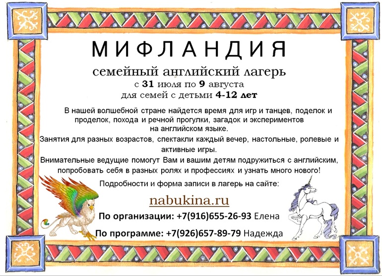 Приглашаем вас в наш уютный английский лагерь с 31 июля по 9 августа. Мы ждем семьи с детьми 4-12 лет в нашей веселой компании на базе отдыха в сосновом бору на берегу теплой речки недалеко от Тольятти.