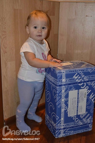 Сегодня днем пошли гулять, и нашли в ящике долгожданное извещение. Сразу же пошли на почту. Была мысль доехать на машине, но решила, что посылочка, скорее всего легкая и смогу донести сама. А посылочка оказалась 4,5 кг! Но ничего, мы донесли… Как же интересно было, что там!
