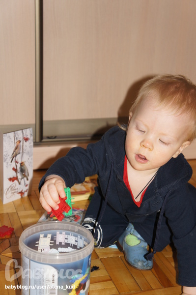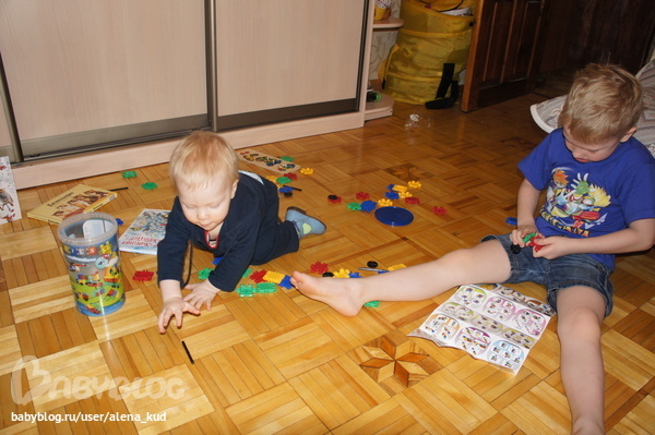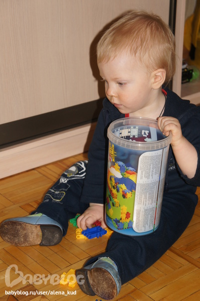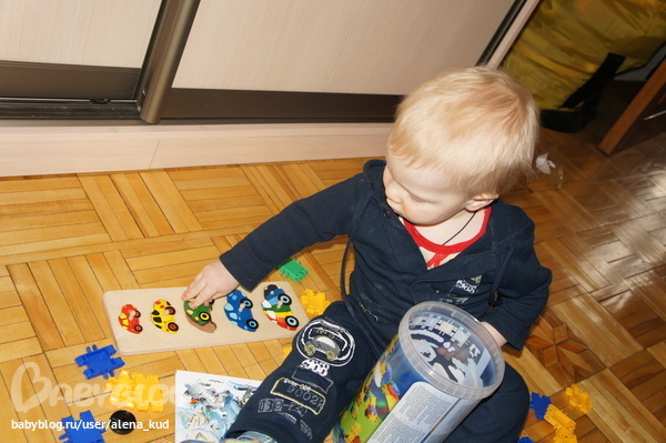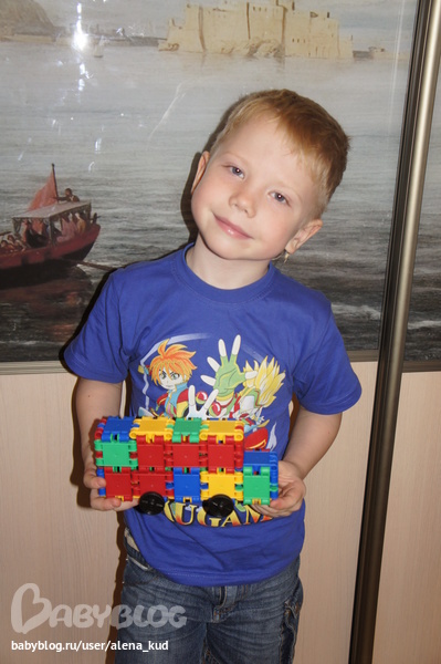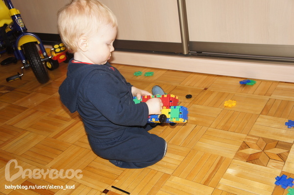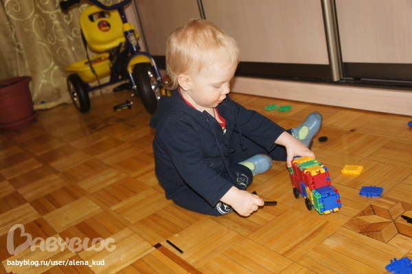 Вот такой конструктор нам подарили!!!Никитка сразу занялся с ним играть,точнее он собирал машинку,а Севе понравилось ведерко и детальки высыпать и складывать))Ниже будет фото машины,которую собрал Никитка,еще потом последовал к ней прицеп,но я уже фото скинула в комп.Вообщем оба довольные,старший как раз дорос до возраста,когда самомму интересно все собирать и не тревожит папу,сам разбирается в схемах!!!