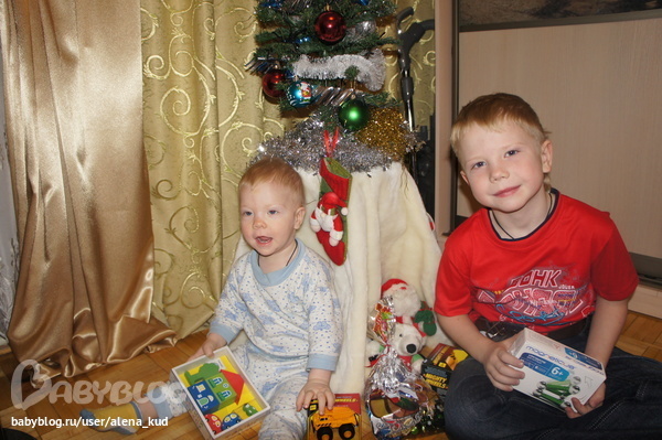 ,что Дед Мороз нам уже и подарочки принес за то что мы елочку поставили и как только Сева встал потащил того смотреть)))