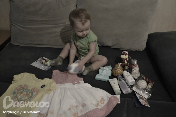 Признаться честно, я до сих пор в легком ошеломлении (наиприятнейшем!) от количества подарков. Я всё вытаскивала, вытаскивала, Маша даже потерялась, за что хвататься...