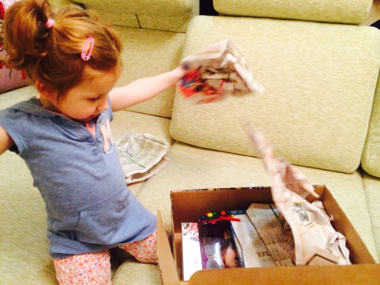 Посылку я получила давно и припрятала. Но сегодня решила, что пора! Ариша терпеливо ждала, пока мы откроем коробку.