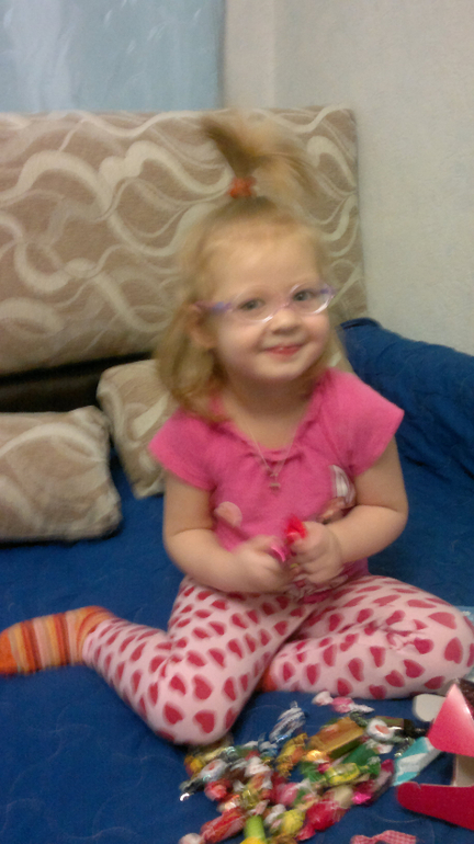 А потом в коробке нашли бАльшую конфету, вот это да!!) А в ней еще много вкусных конфеток! Сразу смотреть, пробовать, ух мама не дает все перепробовать))) а ведь так хочется!