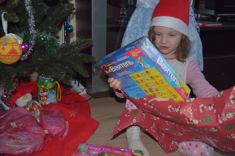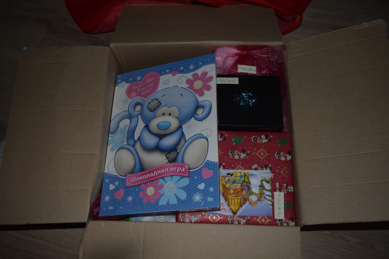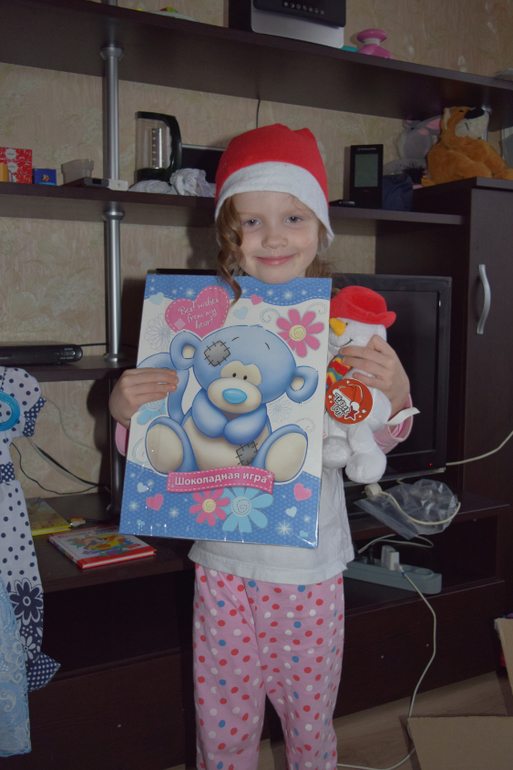 В ночь на 23 декабря у дочки поднялась температура 38, и соответственно, мы не попали в детский сад на утренник (слез было целое море, ведь у нас было 2 стиха, танец, вечером была последняя примерка платья, и тут такое ... ). Мы уже готовы были что-то из заготовленных подарков подарить, чтобы как-то развеселить нашу малышку. Но очень удачно обновился статус у посылочки от феи. 22.12 посылка уже числилась на нашей почте, а уведомления не было (((. Я пошла на почту, и забрала посылку.