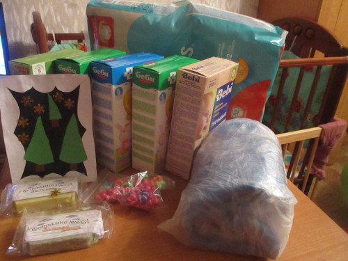 К нам пришли подарки! К нам пришла посылка с Московской области. Такая красота! Мячик для фисбола, кашки, памперсы, резиночки для волос, чудесное мыло и - самое ценное - открытка, сделанная девочкой Варенькой для Лизочки собственноручно.