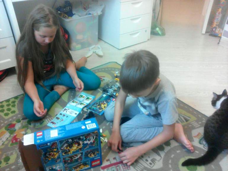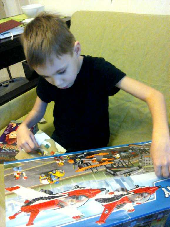 Собирали Лего все вместе. Я сама обожаю эти конструкторы))) И играем уже который день в самолеты. А если еще соединить это с другими наборами, то можно такие истории придумать здоровские! Спасибо, Феи, Вам большое за радость!!!
