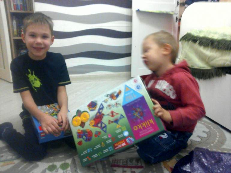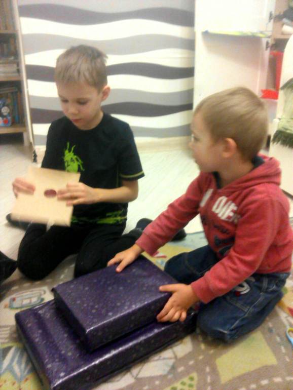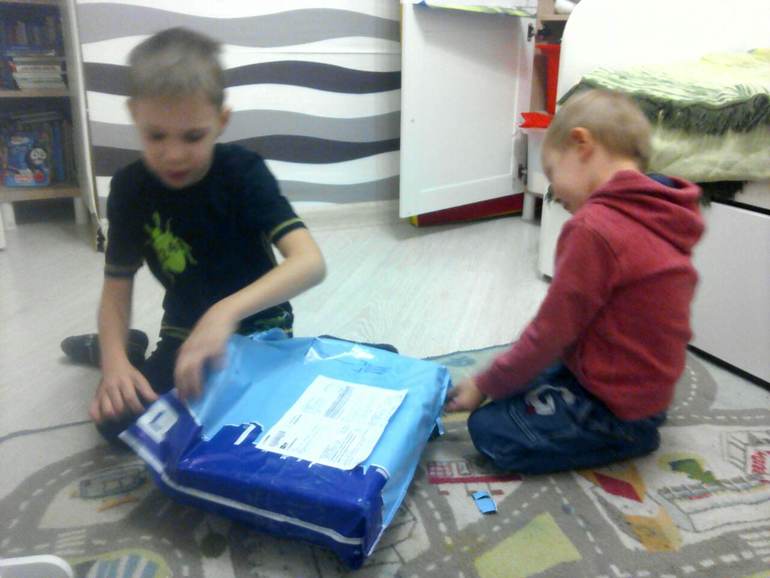 В этом году по доброй, уже, традиции, Макару пришли посылочки от настоящих Фей. И каждый раз это 100%ое попадание в цель))) Столько радости у ребенка!))) И нашего Ванюшку вниманием не обделили, всем хватило радости и улыбок! И что удивительно, они даже не дрались))) От обилия подарков, видимо!