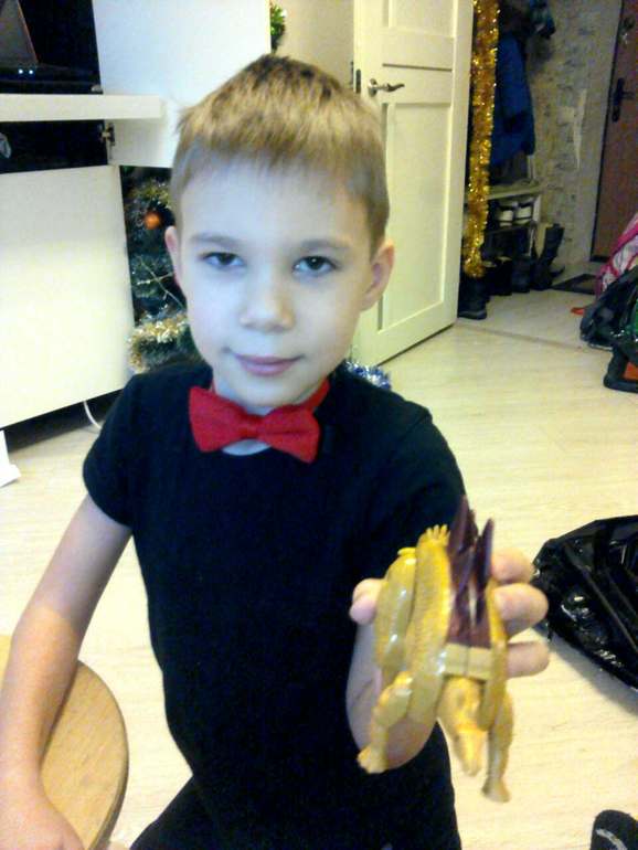 Динозавр тоже от Феи Ольги) Макар упаковку увидел и даже как-то его назвал, знал кто это)) Откуда он все знает?! Очень ему понравился. Скручивается в яйцо)