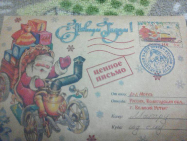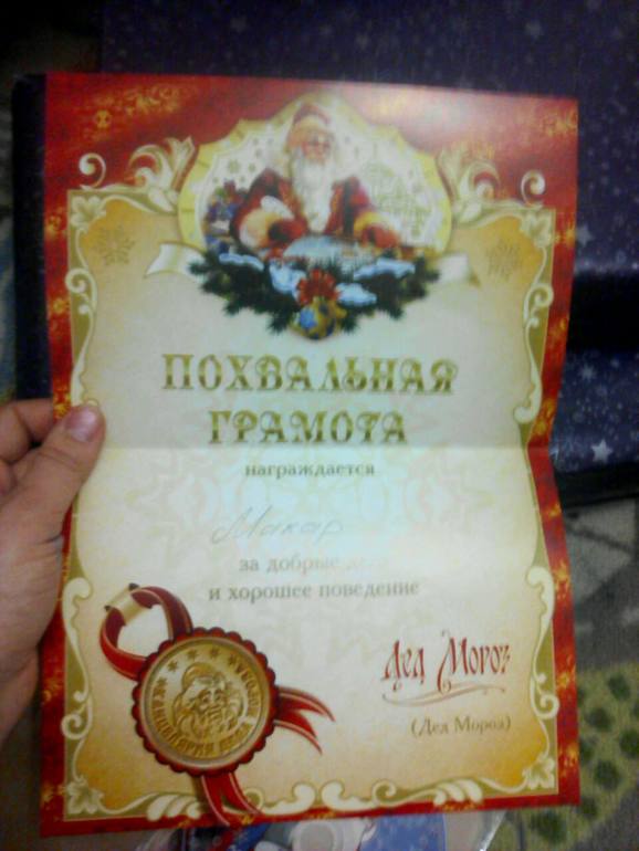 Макар читает от кого письмо)) Дедушка Мороз прислал письмо и даже похвальную грамоту!!! И письмо то настоящее, с печатью, все как положено!