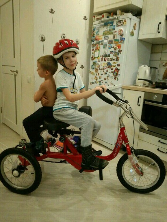 Велосипед весь регулируется. Сначала Макар не смог ехать и у меня прям инфаркт случился. Но потом я прям с ним подрегулировала все и он поехал! Педали регулируются по длине ноги,можно подвинуть пятку или мысок. Сиденье ездит ближе-дальше от руля и регулируется по высоте. Руль тоже регулируется по высоте и по наклону,ближе-дальше. Рама низкая. ДЦПшкам часто нелегко высоко поднять ногу,тут Макар залезает легко. Есть задний тормоз на колесе,можно его зафиксировать и смело залезать,а потом просто рукой,сидя на велике отпустить тормоз и ехать. Для езды есть тормоз на руле. Хода назад нет. На колесах светооражатели. Велик не оч огромный,по длине как обычный вел на наш рост. Колеса задние в двери проходят легко. Вес большой! Но это нужно для устойчивости. У нас дома нет ступеней,поэтому проблем нет.Я пока не нашла недостатков! Разве что звонка нет))) купим его отдельно.😁 - Ах,да! Шлем идет в комплекте.