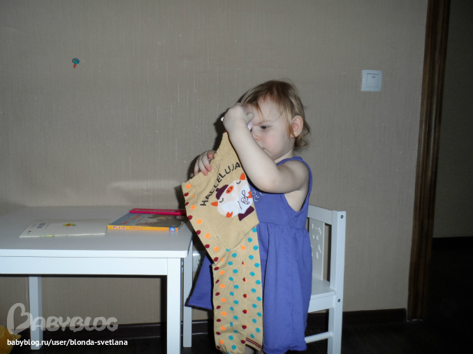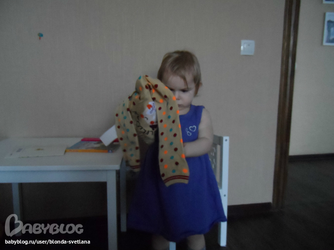 и только когда ее переодела , проявила интерес к штанишкам ))))