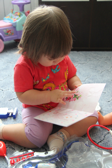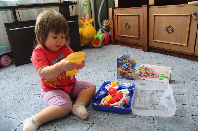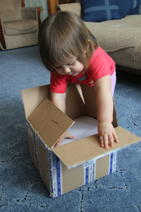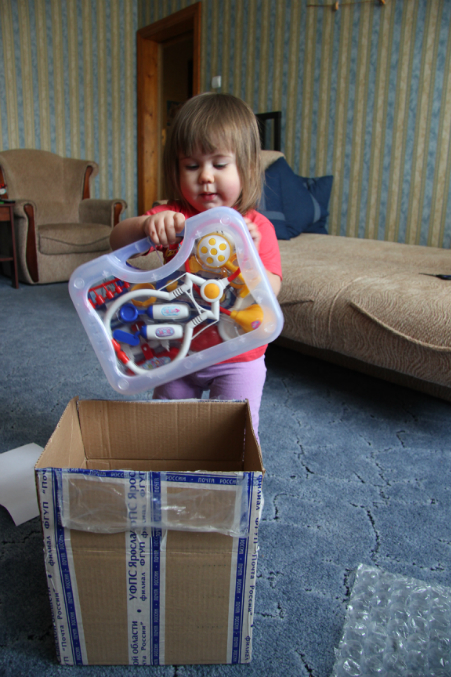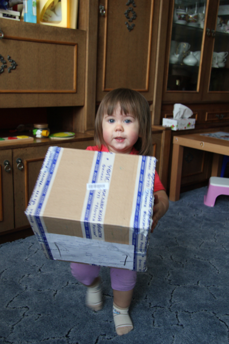 пока Алинка гуляла с бабушкой, я быстренько сбегала на почту, и после прогулки Алька сразу принялась за распаковку))