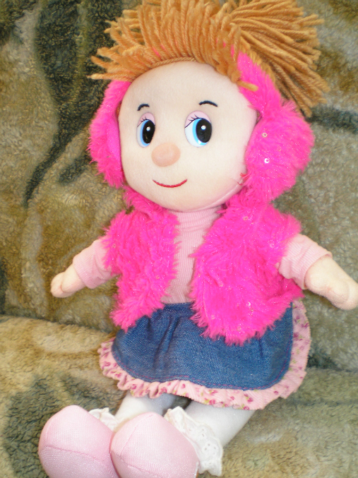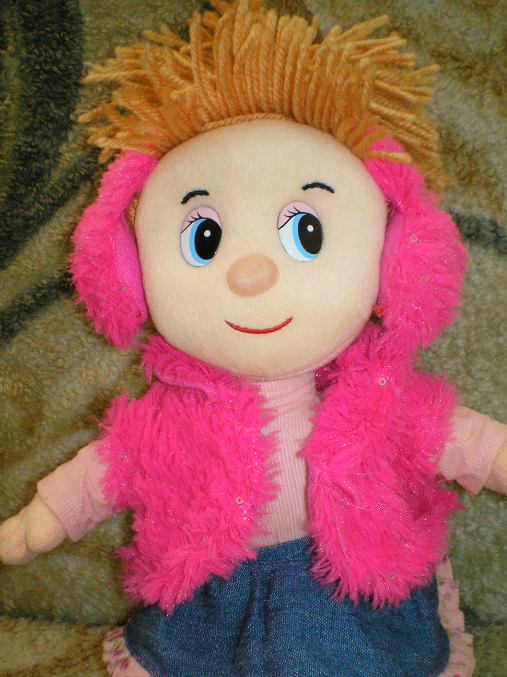 А еще вот такая моднявая кукляха,они даже с Маргошей чем-то похожи.Куколка музыкальная,и самое главное-приборчик этот музыкальный можно с неё доставать,чтоб постирать её.А стираем мы ее частенько-уж очень доча любит нацеловывать своих куколок.