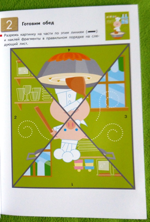 Дочка в 3,8 — сама режет и клеит, я только рядом сижу, контролирую. Там от простого к сложному идет. Главное, чтобы ребенок имел навыки обращения с ножницами и собирания пазлов.