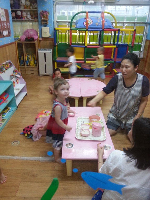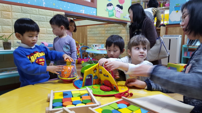 Обучение очень насыщенное. Каждый день недели свои занятия: английский, балет, физкультура, кострукторы, рабочие тетради, учат корейский алфавит, воспитатели читают книги. Раз в неделю возят на экскурсию или на игровую площадку