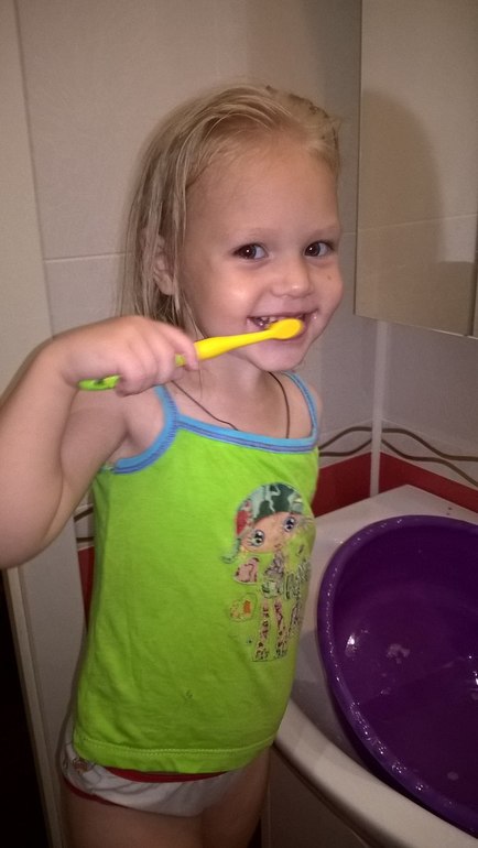 С зубной пастой выбор прост - выбирает сама ту, что нравится в магазине. Если была с дракончиком, то в след.раз возьмем с феей) Иногда переходит на нашу зубную пасту. Нравится ей что она сильно пенится, выплевывает пенку, полощет ротик) Вечером эту процедуру выполняет сама, утром же досыпает сидя у меня на коленях, а я умываю ее и чищу зубки. Сморкается и чистит ушки уже давно самостоятельно.