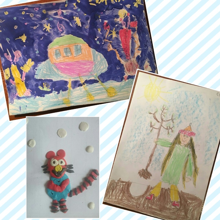 Спасибо. Обычно рисует сама, что-то придумывает или спросит, что мне нарисовать, предлагаю ей что-то, она и рисует. А конкретно эти две работы рисовала не сама, под руководством педагога.