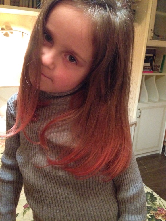Круто! Старшая моя лет в 5-6 тоже любила, мы какой то тушью для волос ей челку в ярко розовый красили, и зеленый, по очереди, еще в серебряный, к школе прошло))). Скоро 25 ей, трагедий не было, кроме несчастной любви)))