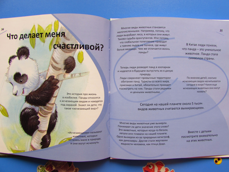 А также в книге рассказывается о том, что нужно делать для того, чтобы сохранить редкие и вымирающие виды животных, к которым кстати относится и панда.