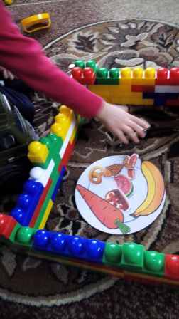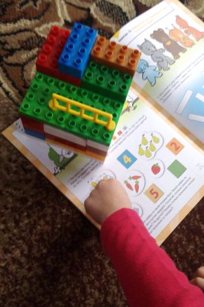 Собирает из лего гаражи для своих машин, в основном у нас полицейские, это наш хит)) Я предложила поиграть в магазин, но не совсем стандартном варианте. Мы построили несколько из конструктора несколько магазинов и даже Глеб построил супермаркет)) В нем мы положили вырезанные фрукты и машинку, в другом сделали магазин одежды, с помощью разворота из пособия Школы Семи Гномов "Прогулки по городу",Расплачивался сын как и положено деньгами)), заодно цифры закрепили. только в третьем, где был зоомагазин, необходимо было выполнить задание из книги Школы Семи Гномов"Счет, форма, величина", чтобы получить необходимую вещь. Эту игру играли уже несколько раз,сын оценил мою задумку.