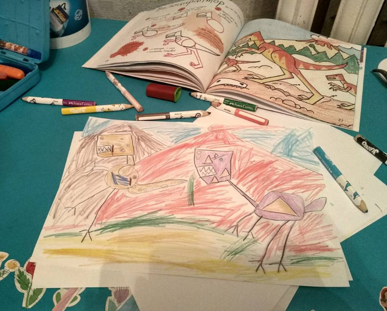 Кстати, сын ещё очень заинтересовался рисованием когда нашёл книжку "как нарисовать динозавра". Правда год назад она его не заинтересовала. И был вначале страх, что не получится, даже несколько разорванных рисунков)))))
