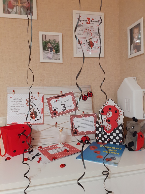 Вот такой домашний День Рождения получился у Божьей коровки по имени Полинка...