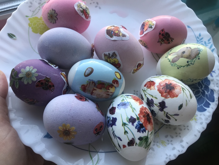 Занятие эти конечно не самостоятельное для ребёнка. Но наклейки и спец фломастеры позволяют минут 15-20 отдохнуть😁 зависит от количества яиц 😁