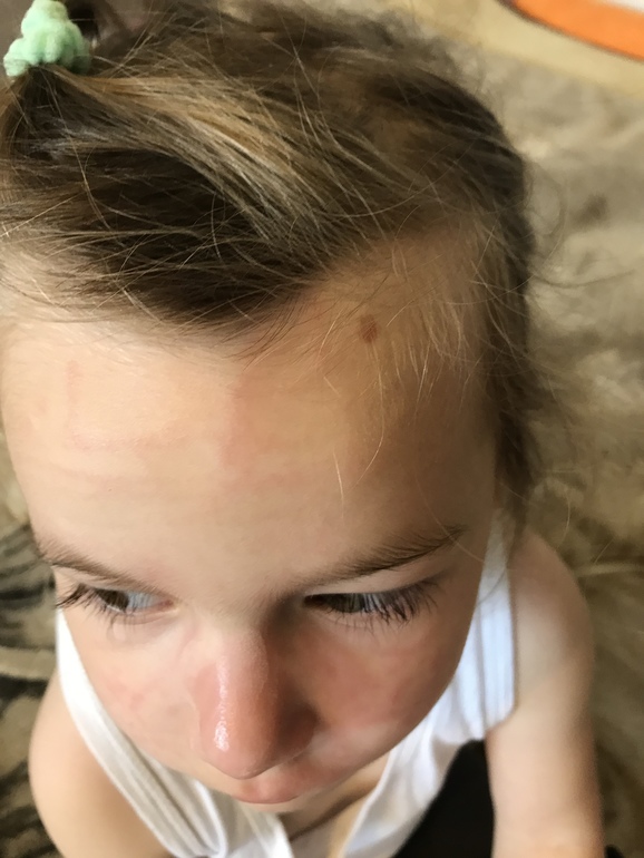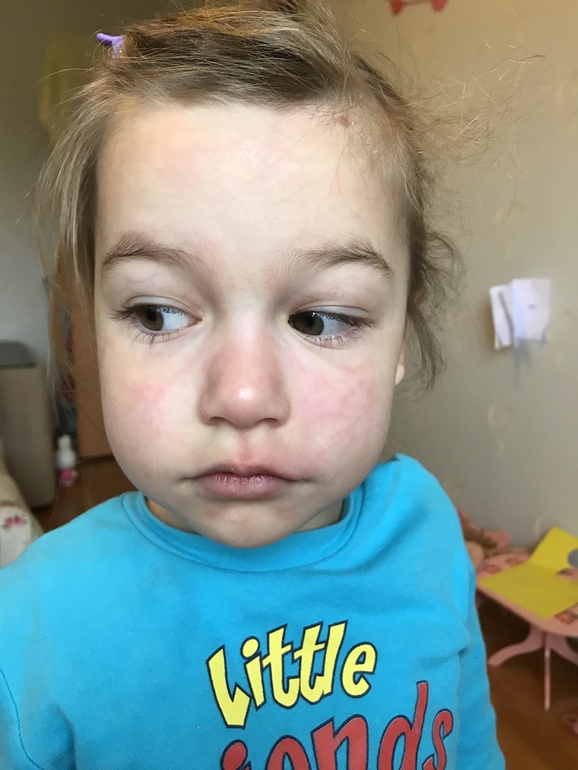 Мы сразу с утра как увидали, дали супрастин. А днём фенистил в каплях. На ночь тоже дадим. Ещё она потом все лицо скотчем заклеила🤪 опять с папой была😁 он отдирал со слезами. Потом умыл и намазал фенистилом. Так позже она все равно начала скотч клеить на лицо, уже не разрешали.