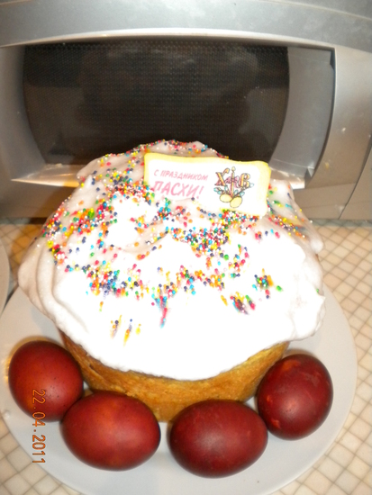 Вот и наша первая Пасха с сыночком. До этого два года не получался кулич, а в этом году вроде удался,по крайней мере по виду, еще не ели)))) Жаль что в связи с ГВ мне нельзя его, хотя я все таки чуть-чуть попробую))) Так что смотрите, если что дам рецепт. а еще сделала творожную Пасху, фото выложу уже завтра. Куличики сегодня освятили, их в церквки было столько))) ниже фотоотчет)))Всех с праздником, и здоровья вашим лялькам)))