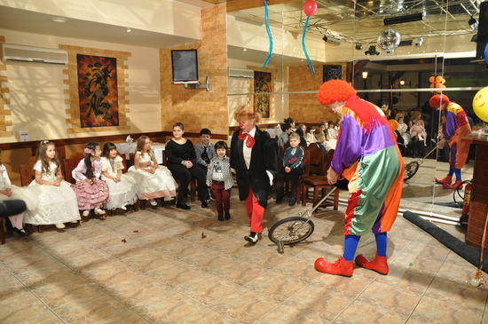 мы к 4 всех собрали после нашего первого сна она просыпалась где то в 2.посидели пол часа за столом дети поели.а в пять пришли клоуны и начали представление.но мне кажется вся фишка была в клоунах они устроили такое представление просто супер!!!! у них были маленькие шиншилки живые.велосипед какой то ну много всего интерессного.представление шло 1.5 часа а взрослые сидели спокойно за столом.потом принесли торт дети поели попили чай и клоуны начали пускать невераятные мыльные пузыри они их одевали на детей получалось ребенок стоит в мыльном пузыре.дети визжали от восторга!!!! ну а потом моя захотела спать и мы всех детей увезли домой с бабушками.а сами еще потанцевали часа 2 и домой!!!!!! если получется пришлю пару фоток.и тел клоунов если нужно могу дать но они из тулы незнаю наверное могут и в Москву приехать.