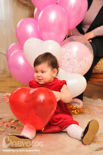 Чудесное розовое чудо.А в красном платице такая маленькая секси(извините в хорошем смысле ).А с розовым шариком это наверное дедушка.Тоже так мило смотрится с внучкой и шариком.Чудесные фотографии)))С днем рождения вас))))
