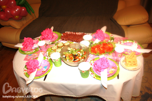 Оформление праздникаВ силу того что мама постоянно на работе, импровизировали.. причём с достаточно большой скоростью, две ночи на шары из бумаги, тарелки из Затеи, такси с шарами после работы и тортик (спасибо Настюше)!