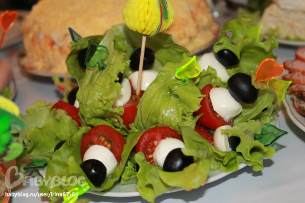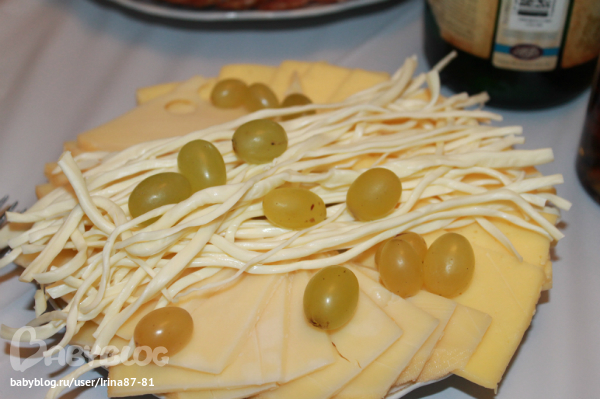 А это собственно основной стол, для детей на горячее были сосисочки маленькие с воткнутыми в них спагети, сфоткать не успела...=(